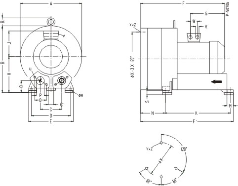 德冠品牌高壓風(fēng)機(jī)產(chǎn)品尺寸表